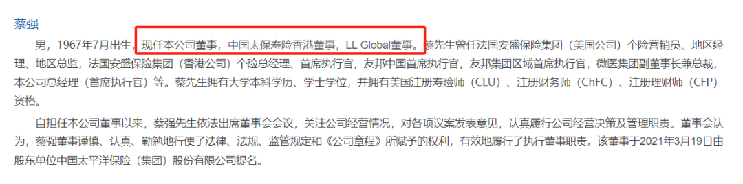 太保寿险总经理蔡强离任,董事长潘艳红代行总经理职权