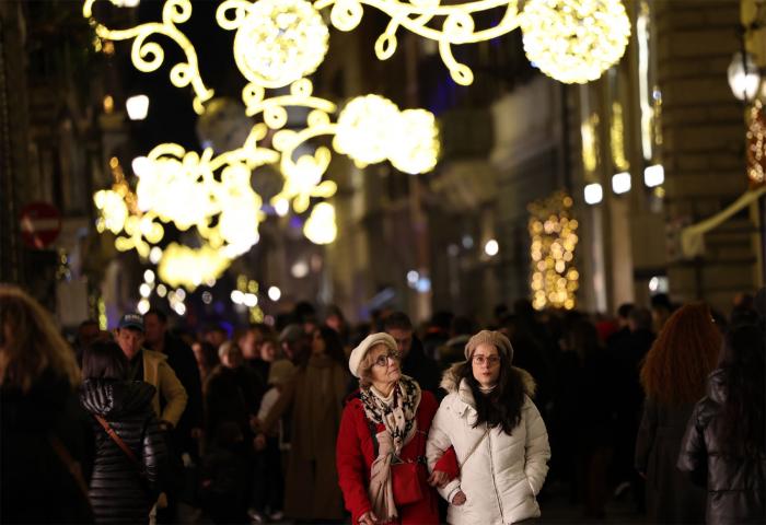 近日,意大利罗马的主要地标建筑和市中心街道点亮节日彩灯,为冬日增添缤纷色彩。