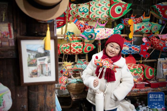 春节临近,位于安徽省黄山市黟县的古村落年味越来越浓,人们按照传统习俗打食桃、写春联。不少游客走进古村落品尝农家宴、体验鱼灯制作、购买当地特色年货,沉浸式感受徽州年味。