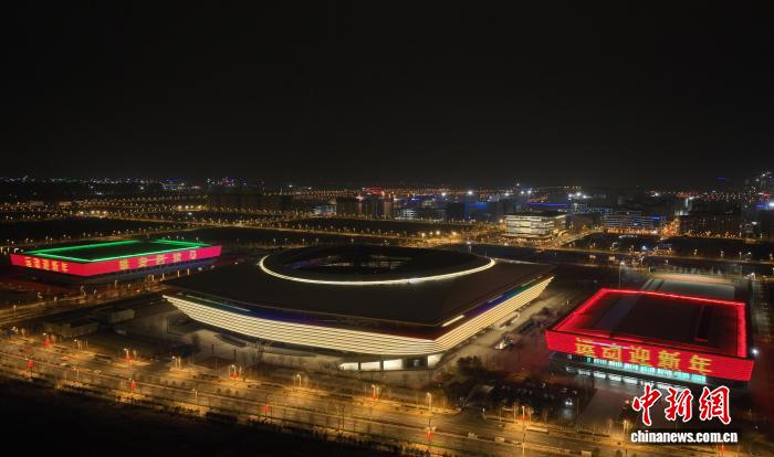 2月27日晚,雄安体育中心灯光璀璨。(无人机照片) 中新网记者 韩冰 摄