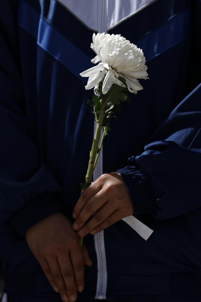 据了解,每年徒步活动开始前,学校都会利用课间加强学生体能训练,介绍任山河战斗历史。在徒步过程中,交警、医护人员、救援人员、志愿者等为学生保驾护航,途中还设有补给点和保障车辆。4月3日,参加徒步祭英烈活动的学生在任山河烈士陵园向烈士墓碑献花(无人机照片)。