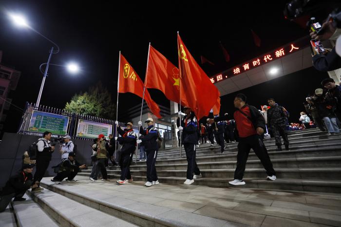 4月3日清晨,参加徒步祭英烈活动的学生从弘文中学出发。
