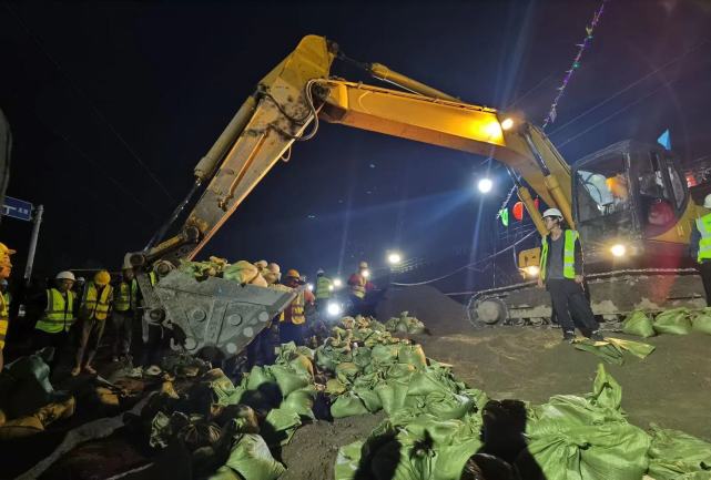 目前,昌源河铁路桥下行线路的抢通工作也正加快进行中。