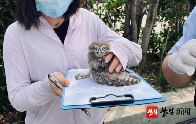 近日,一只受伤的猫头鹰雏鹰落在了南京六合区横梁街道新篁社区一居民家中。居民发现受伤的小猫头鹰后立即报警求助,最终这只国家二级保护动物被送往金牛湖野生动物园动物救助站进行救治。