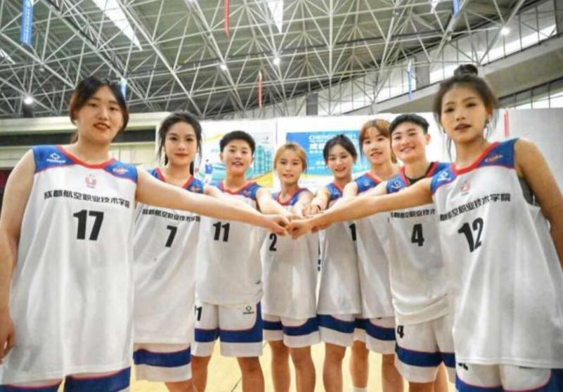 ■ 其中,一支来自成都高校的女子篮球队吸引了观众的注意。她们来自成都航空职业技术学院,由15名平均年龄不到20岁、平均身高1.7米的学生组成。