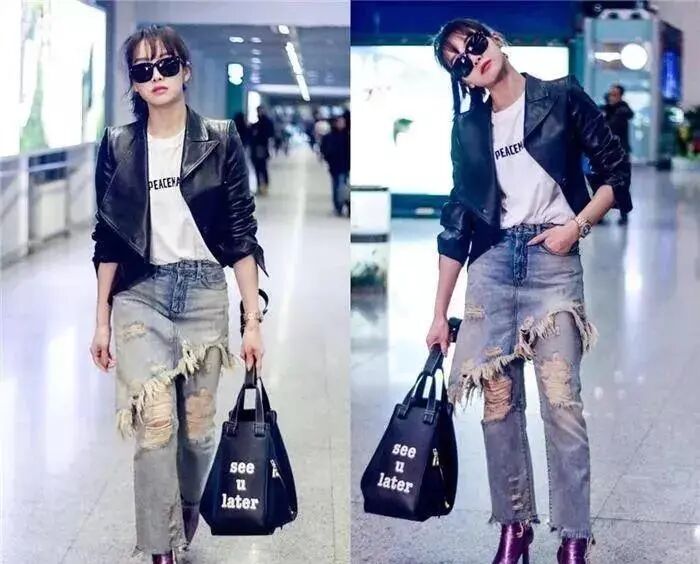 鲨鱼裤、打底裤火热的时候,大家为了避免这些紧身的裤子带来尴尬就会选择里面搭配一个长款的T恤,而后延伸出了半截T恤的“屁帘”。