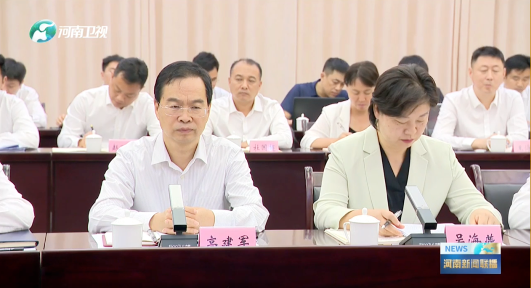 在兰考县委机关,楼阳生主持召开了座谈会,宣讲党的二十届三中全会精神。画面显示,开封市委书记高建军、市长吴海燕,兰考县委书记陈维忠等都在现场。