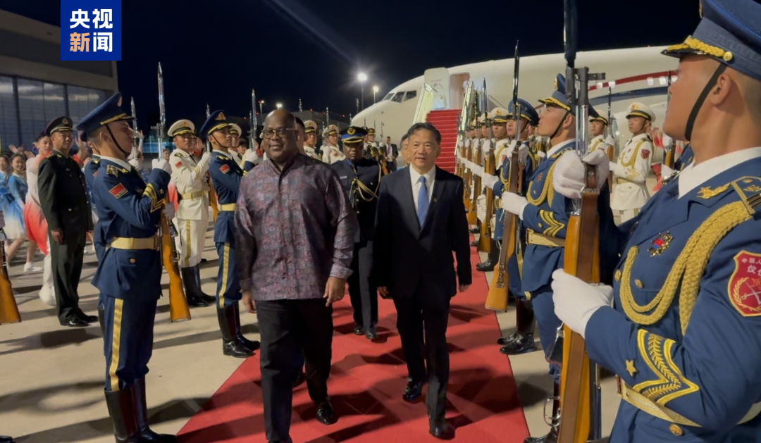 9月1日22点35分,刚果(金)总统齐塞克迪乘机抵达北京,他将出席2024年中非合作论坛峰会。