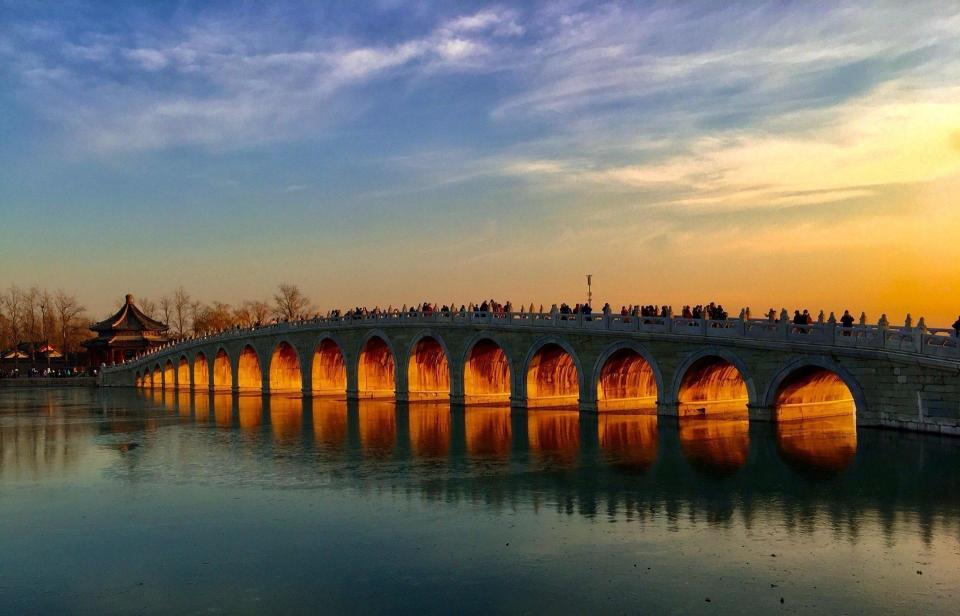 十七孔桥换新装,没有落日也能“金光穿洞”!
