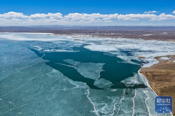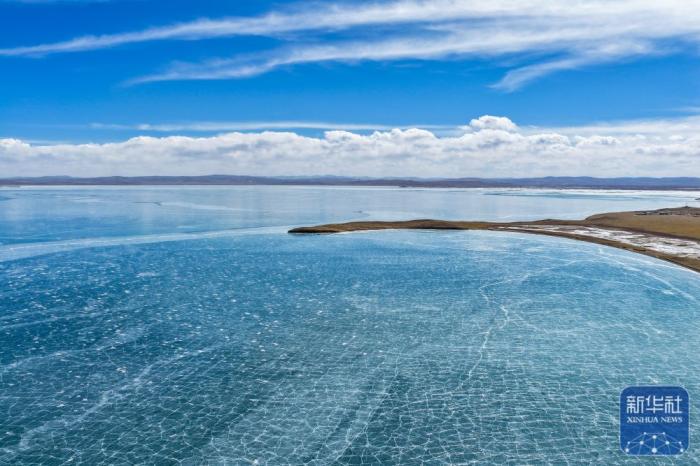 初春时节,黄河源地区冰雪渐融,湖冰与广袤草原相映成景,尽显辽阔壮美。 新华社记者 张龙、李占轶 摄影报道
