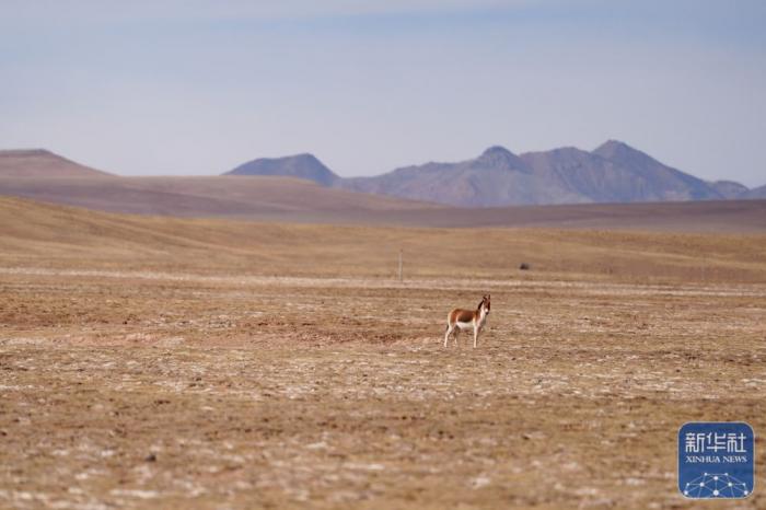 3月10日,在青海省果洛藏族自治州玛多县境内的黄河源地区,一只藏野驴在觅食。