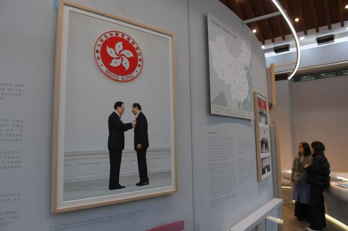 观众观看李兆基博士的创业历程。展览在北京大学李兆基人文学苑举办,展览分为“志存高远”、“开基创业”、“润物无声”与“福泽延绵”四大篇章,分别聚焦李兆基博士的早年成长与赴港初心、洞悉行业潜力的开基历程、遍及教育与民生的公益足迹,以及企业迈向新征程的精神延续。