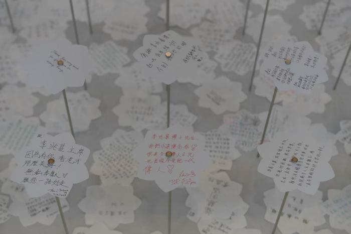 参观展览者的留言。展览免费向公众开放,观众可通过集团会员体系一键星群小程序预约参观。