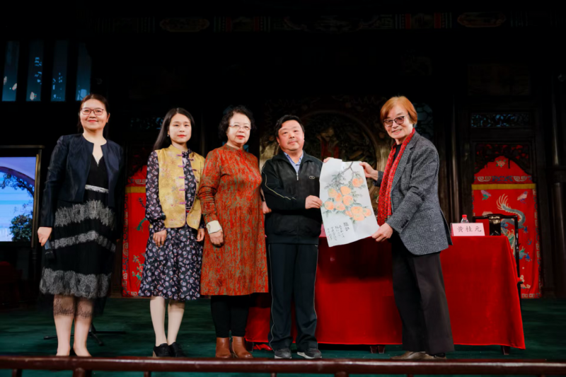 活动尾声,王松向天津市文史研究馆、天津戏剧博物馆赠送了新书。红桥区非遗传承人则以精美的橘红主题纸画回赠,象征着文学与非遗的跨界共鸣。