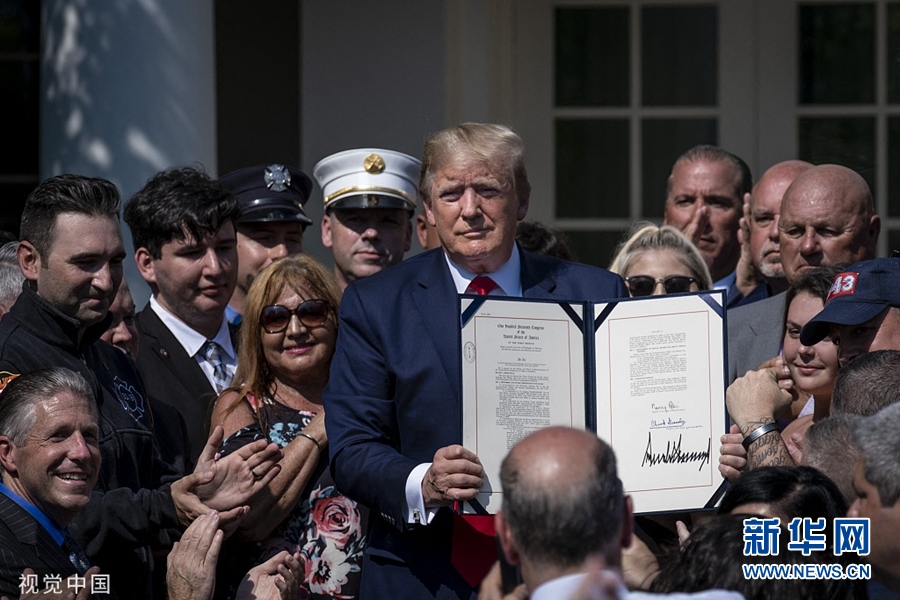当地时间7月29日,美国华盛顿,美国总统特朗普签署《“9·11”受害者赔偿基金法》。