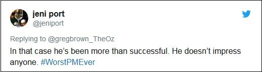 有人针对莫里森所说的“给海外的人留下深刻印象”的言论嘲讽称:“那样的话,他已经非常成功了。他的确没有给任何人留下深刻印象。”