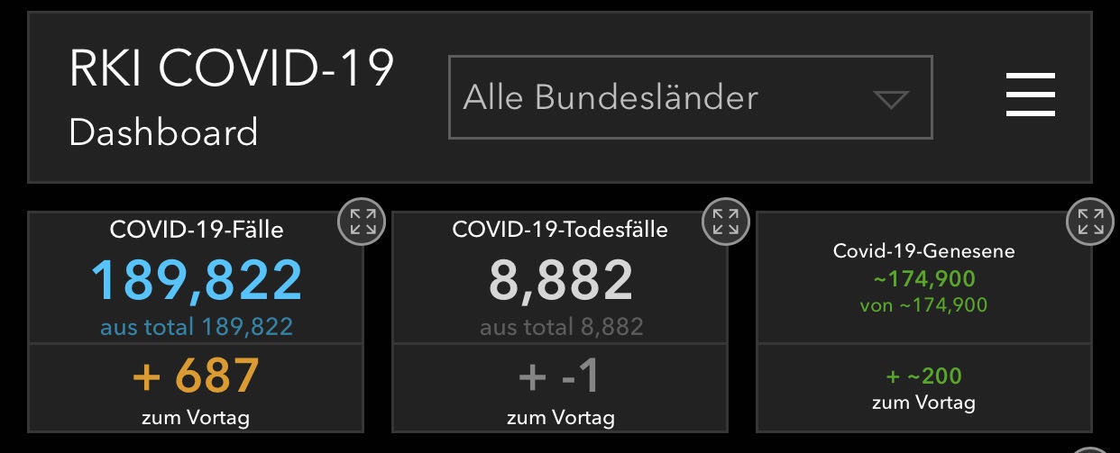 德国新增687例新冠肺炎确诊病例 累计达189822例