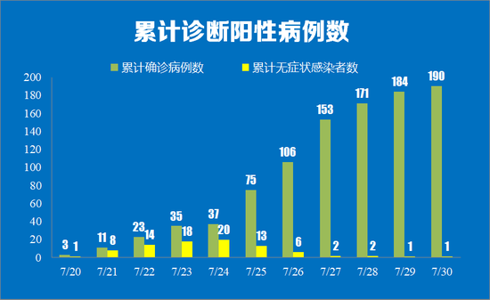 7月20日以来,南京市共报告本土确诊病例190例(其中87例轻型,95例普通型,8例重型),本土无症状感染者1例。所有191例感染者中,江宁区163例、溧水区11例、建邺区4例、鼓楼区4例、雨花台区3例、秦淮区2例、高淳区2例、玄武区1例、栖霞区1例。