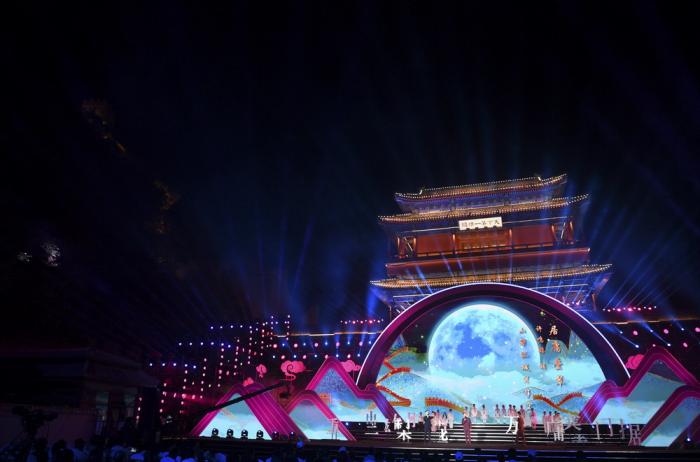 9月9日晚,演员们在2022年“居庸山月”昌平中秋诗歌晚会上表演。