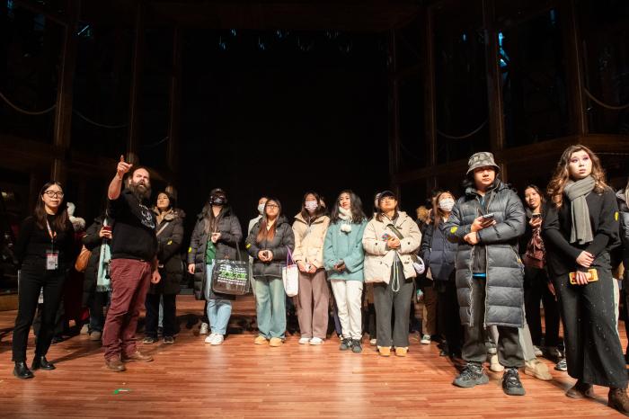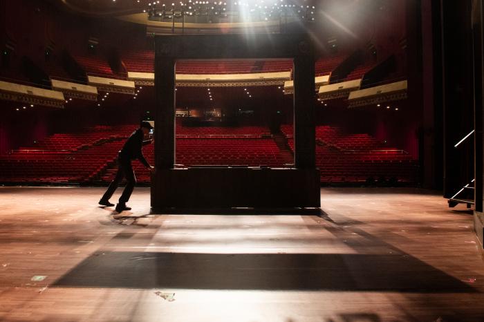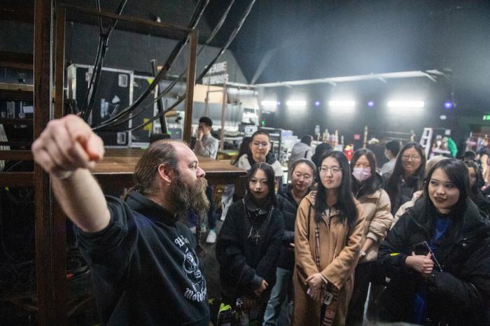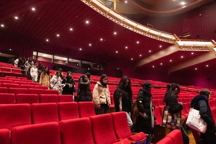 50名观众来到了北京天桥中心大剧场,参与舞台导览活动。