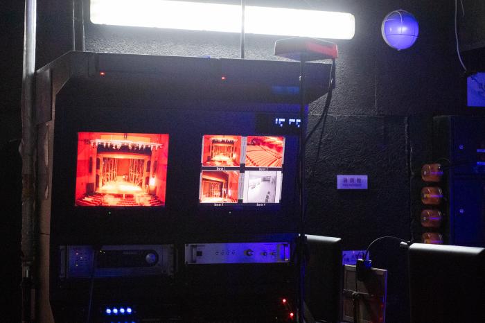 后台遍布了很多摄像头,帮助演员及工作人员了解全场状况。