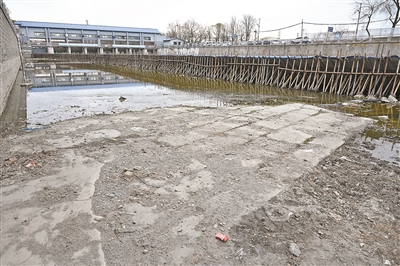 1983年被拆除、次年异地重建的广济桥,因搬离原址而逐渐淡出公众视野。作为土生土长的清河人,杜泽宁却对家乡这座石桥念念不忘。他每次经过清河岸边,都会去广济桥原址附近,寻找古桥的历史痕迹。近日,他终于等来与历史的重逢。跟随杜泽宁,北京青年报记者来到清河闸西侧北岸,见河道内筑起挡水围堰,随着围堰北部的水位下降,一块由条石铺砌的河底显露出来,条石上的斧凿痕清晰可见,尽显古朴沧桑。