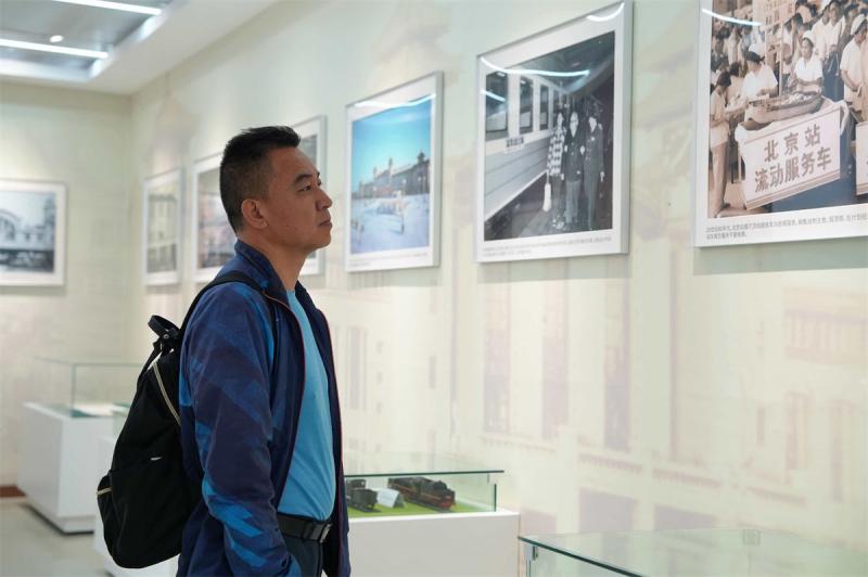 紧邻观景休息区就是站内的“时光列车”展区,据工作人员介绍这一展区日前完成升级。这里珍藏着毛泽东主席亲笔题写的站名手稿,陈列着不同年代的老车票、火车模型与珍贵老照片,一枚枚票据、一幅幅画面串联起北京站的历史,让旅客沿着时间脉络感知铁路发展成就,增强对铁路文化的认同感与自豪感。此次升级还特别展出了北京站车站大楼的各色琉璃瓦、灯饰部件及瓷器摆件。