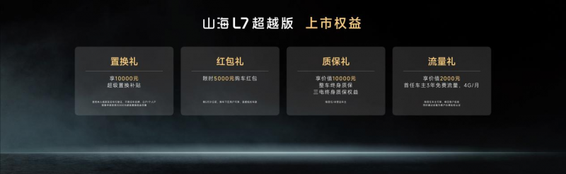 2026款捷途山海L7超越版推出3款车型,官方指导价为11.49万元-12.79万元,上市期间送上4重购车礼遇,限时抢购价9.99万元-11.29万元,助力更多家庭轻松开启向往的电混出行生活。