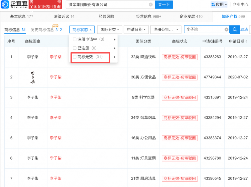 李子柒前MCN公司微念完成股改 ,其申请“李子柒”商标均已无效