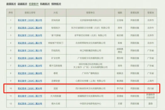 作为知名文化类视频创作者,李子柒的近况广受关注。记者从国家电影局官网获悉,由李子柒担任编剧的纪录片《温室》已正式通过备案,备案单位为四川秭柒东来文化传播有限公司。信息显示,此次纪录片《温室》将聚焦李子柒为患有慢性肺心病的奶奶建造一座恒温恒湿的温室,希望借此让奶奶在冬日免受风寒。影片还将呈现她在这一过程中逐渐疗愈原生家庭所带来的内心创伤。