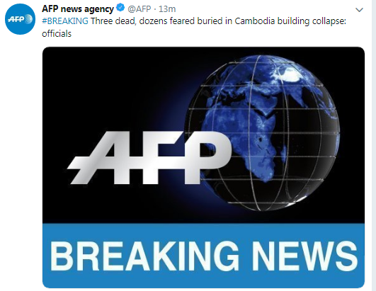 柬埔寨一座7层建筑物坍塌 3人死亡多人被埋
