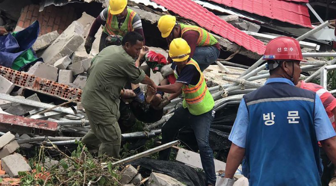 柬埔寨劳动和职业培训部表示,大楼倒塌时有30名工人在现场。事发后,救援人员赶往现场,使用锯子切割钢梁,并用挖掘机将瓦砾堆从现场移走。据悉,有1000人参加了救援行动行动。