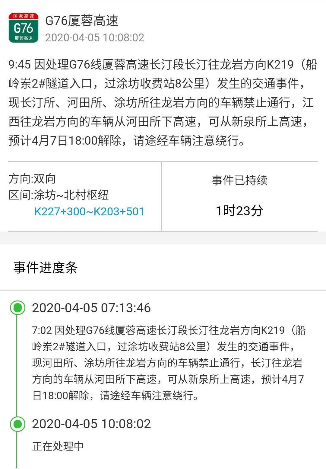 根据最新通报,目前,福建长汀所、河田所、涂坊所往福建龙岩方向的车辆禁止通行,江西往福建龙岩方向的车辆从福建河田所下高速,可从福建新泉所上高速。