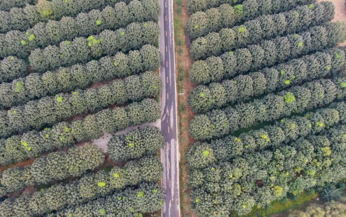 这是9月23日在兰考县堌阳镇徐场村拍摄的泡桐树(无人机照片)。