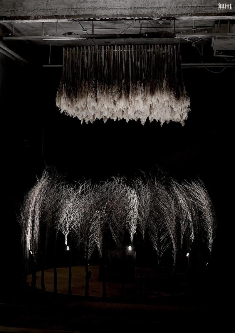 当身着無用手作便装的许知远推开「展厅」的门,以芦花、芒草、地肤、竹子等为素材创作的几个美轮美奂的装置艺术作品,迎面而来,在灯光和音乐的交融之下,安宁静谧的氛围笼罩四周,让身临其境的人瞬间穿越到《诗经》里“蒹葭苍苍,白露为霜”的时代;空间里或悬或立、或倚或卧、错落陈置的四百多件传统手作扫具,构建了一个意境古朴的扫具世界,它们是無用团队辗转中国大江南北调研,探访众多手艺人得来的,其造型各异、材质不一、工艺有别、来源广泛,但都取材于自然,各具特色,各带着当时当地的生活印记和民俗风情。