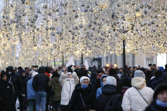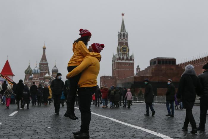 2021年1月1日,人们在俄罗斯首都莫斯科红场游览。