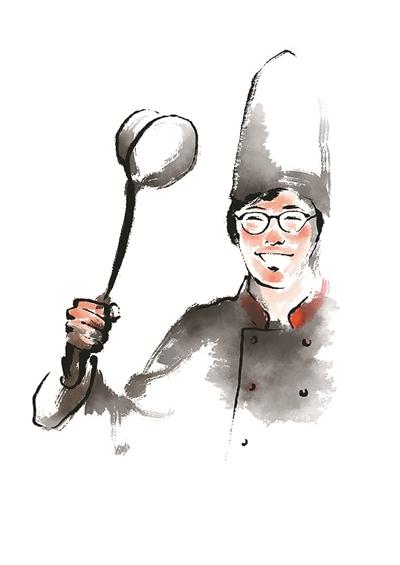 英语角里,很容易从一群学生中辨认出灌饼小哥,他身材宽瘦,带点驼背,青白的面容看起来柔弱腼腆,整体形象并不怎么整洁,条纹衬衫胸前还留着两块洗不掉的污渍。不过,他偏着脑袋一手插裤兜,一手在半空比划着讲英语,倒挺有姿态,只见两片薄嘴唇翻动迅速,声音细沉稳重。