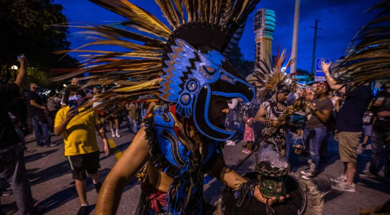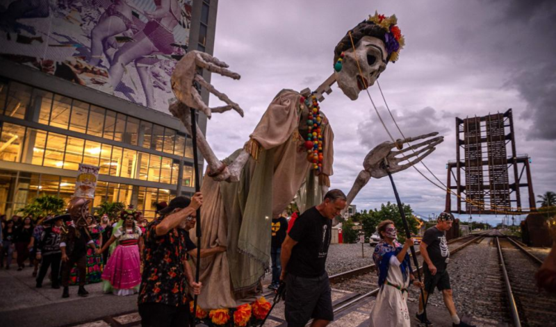 当地时间2021年11月2日,美国佛罗里达州劳德代尔堡,当地民众参加第12届亡灵节游行。