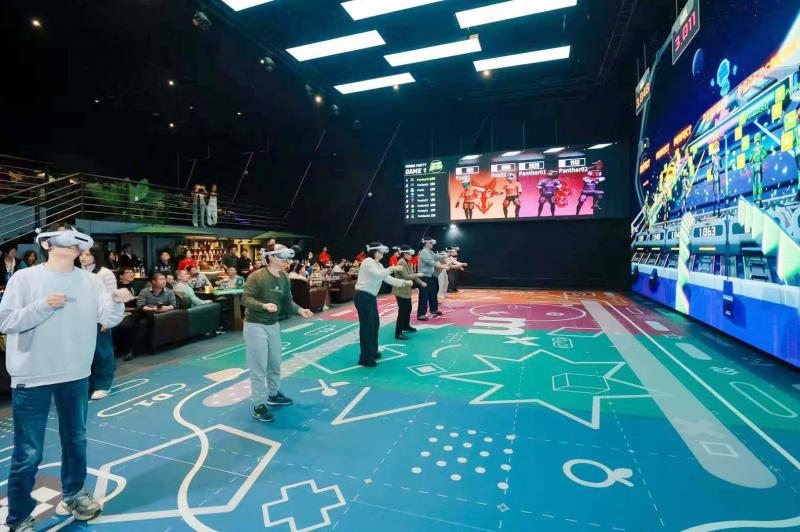 耀莱一号Mirra奇镜派对融合厅以“文化+科技”为内核,将科技与文化娱乐有机结合,打造以“电影、游戏、演出、餐饮”为主要内容的多元社交空间。通过空间复用与多元业态为影院经营开辟新可能。空间中特别引入“Mirra 奇镜派对”VR大屏互动游戏,以多源融合动作捕捉系统为核心,结合实时8K渲染与AI驱动的互动视觉生成技术,实现多人即时动态成像,为玩家带来电影级画质的沉浸体验,玩家可深度互动、同步竞技。科技创新带动文化消费场景的升级,数字赋能是打破行业边界的源动力。