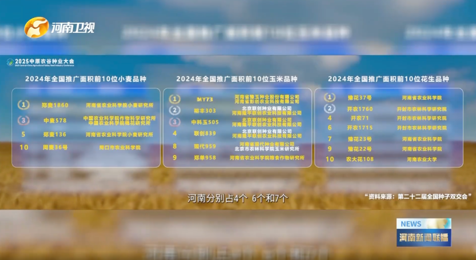 “十四五”以来,河南省有822个品种通过国家审定,125个“叫得响、推得开、种得好”的优良品种走出实验室,成为农民朋友的“放心种”。