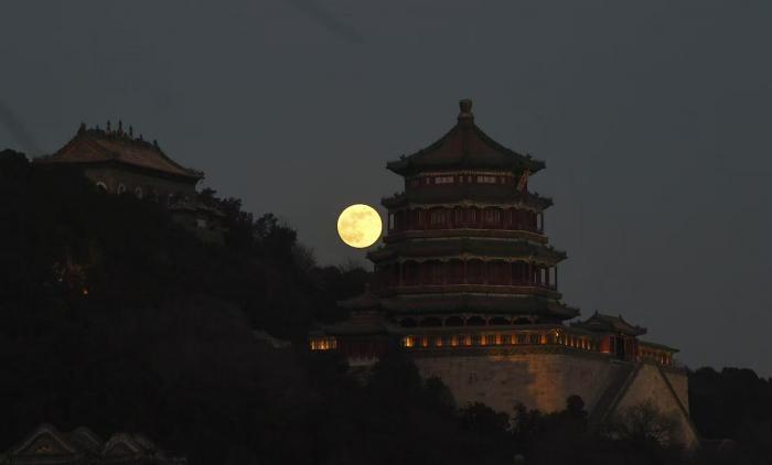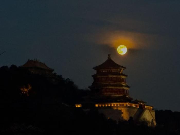 美图|新年首轮满月映古桥 市民颐和园赏月