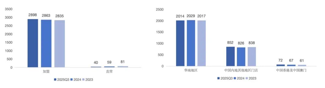 但这并不意味着公司处于“静止”状态。相反,内部的门店迭代比较剧烈。2023年至2025年三季度期间,公司累计新开门店908家,却同时也关闭了916家。这种“开一家、关一家”的高频更替,更像是一种存量市场内的优化,而非真正的增量扩张。