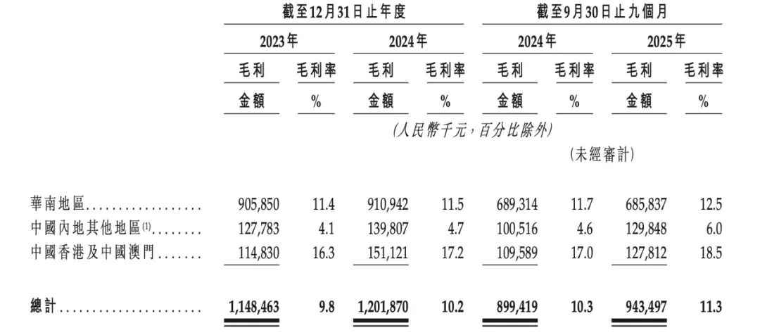 毛利率角度看,钱大妈在华南地区为12.5%,而内地其他地区仅6%。