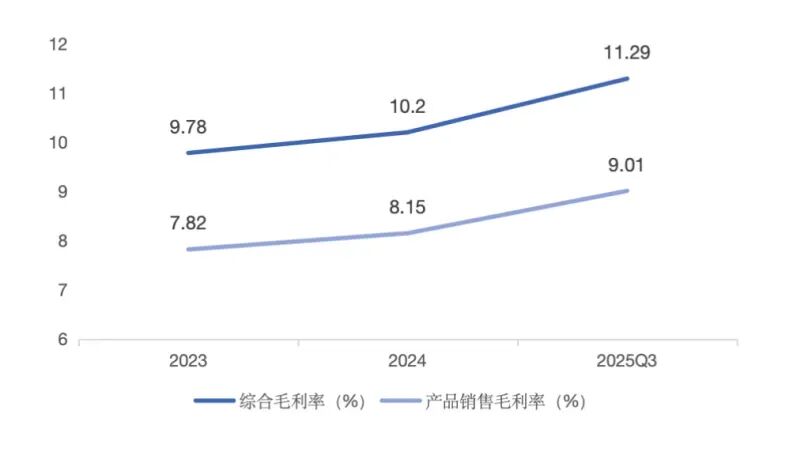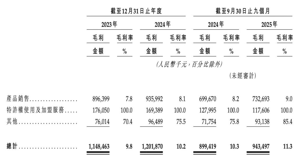 毛利率也反映出了这种趋势,如钱大妈的营业收入、门店数量虽没有增长,但综合毛利率从2023年的9.78%提升至2025年三季度的11.29%,产品销售毛利率从7.82%提升至9.01%。