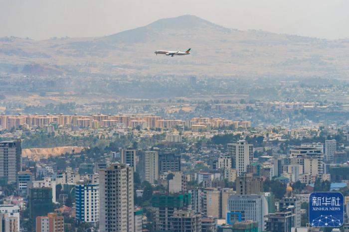 一架埃塞俄比亚航空公司的客机飞过亚的斯亚贝巴城市上空。新华社记者 谢剑飞 摄