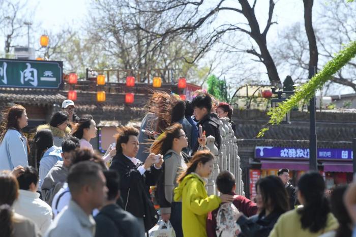 北京市气象台4月5日6时发布天气预报:今天早晨至白天多云转晴,偏北风二级转四级左右(阵风七八级),最高气温19℃。北京青年报记者在什刹海景区看到,目前游船全部停运。
