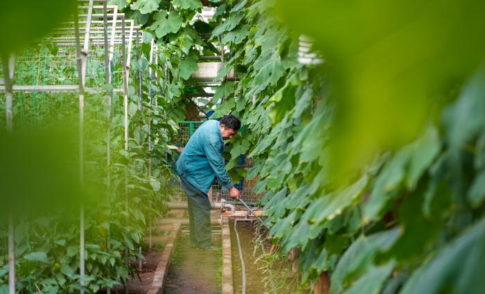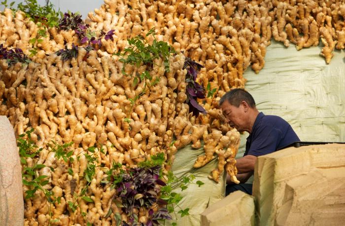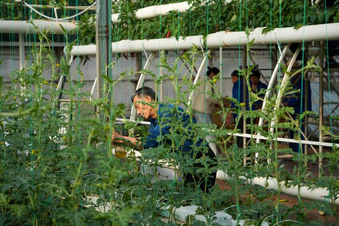 本届菜博会将于4月20日至5月30日在山东省潍坊市寿光市蔬菜高科技示范园举行。4月1日,在寿光市蔬菜高科技示范园,工作人员养护将在菜博会展出的蔬菜。