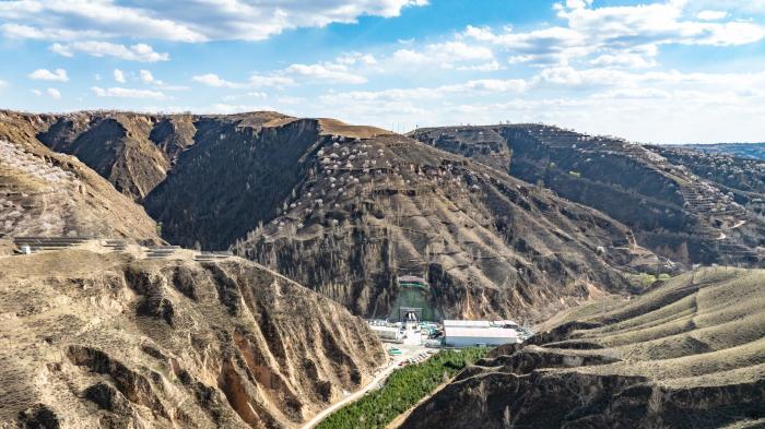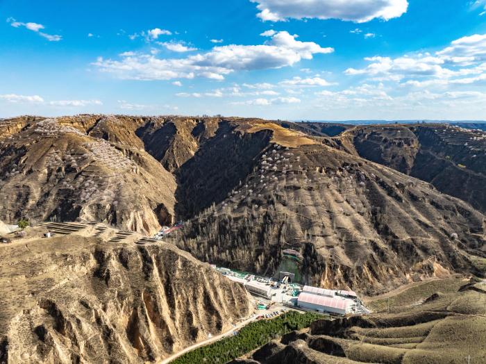 4月1日拍摄的延榆高铁桐柏塬1号隧道施工现场(无人机照片)。