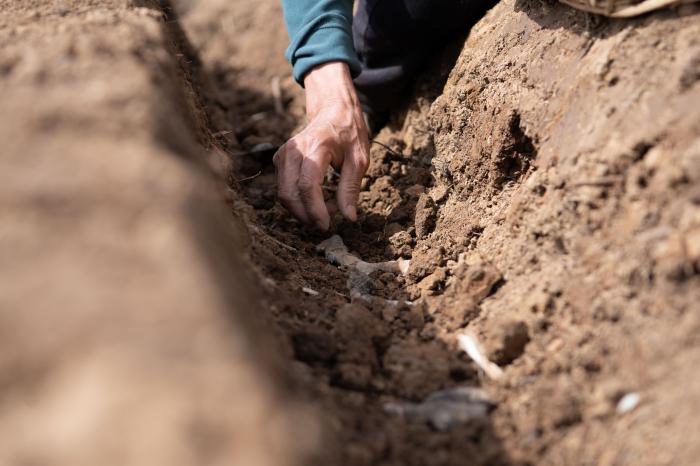 每年清明前后是铜陵白姜种植的最佳时节,人们躬身田间,把希望的姜种播进沃土,用勤劳的双手延续古老的农耕文明。4月5日,在安徽省铜陵市郊区大通镇大院村,农民在种植白姜。新华社记者 张端 摄