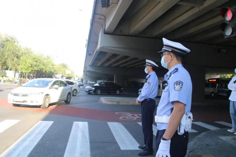 9月6日下午5点,北四环的惠新东桥下的车辆川流不息,人行道绿灯亮起,斑马线上一行人由南向北欲过马路,但一辆经路口左转的黑色轿车,依旧慢速挪动没有礼让行人,正在路口执勤的朝阳交通支队亚运村大队民警伸手示意驾驶员靠边停车。